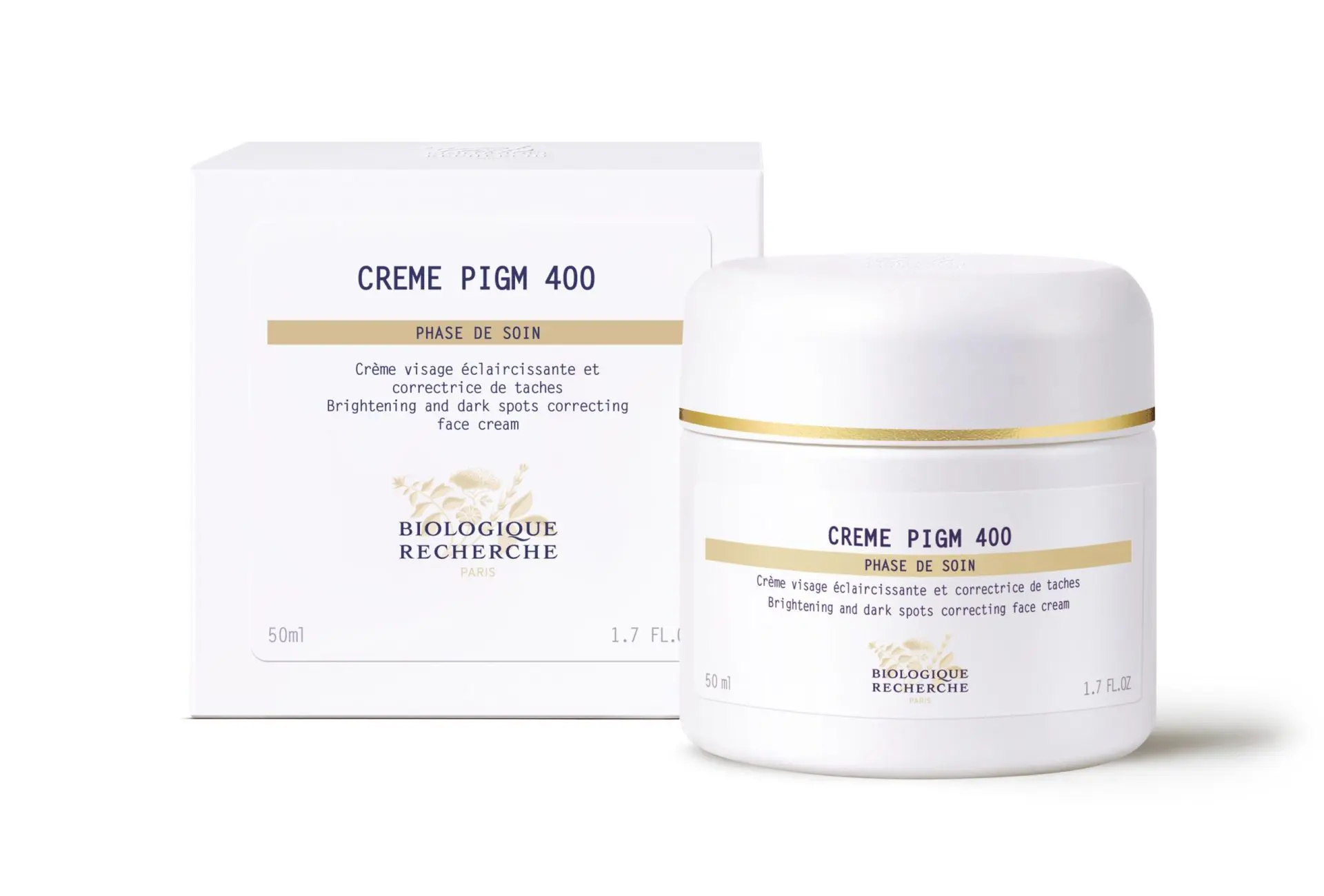Crème PIGM 400 is a concentrate of active ingredients that brightens and protects skin, while reducing the appearance of dark spots. It is specially formulated as both a preventive and corrective treatment, helping reduce the intensity of existing pigment spots and prevent the appearance of new blemishes. The complexion becomes more radiant, and skin is more uniform.